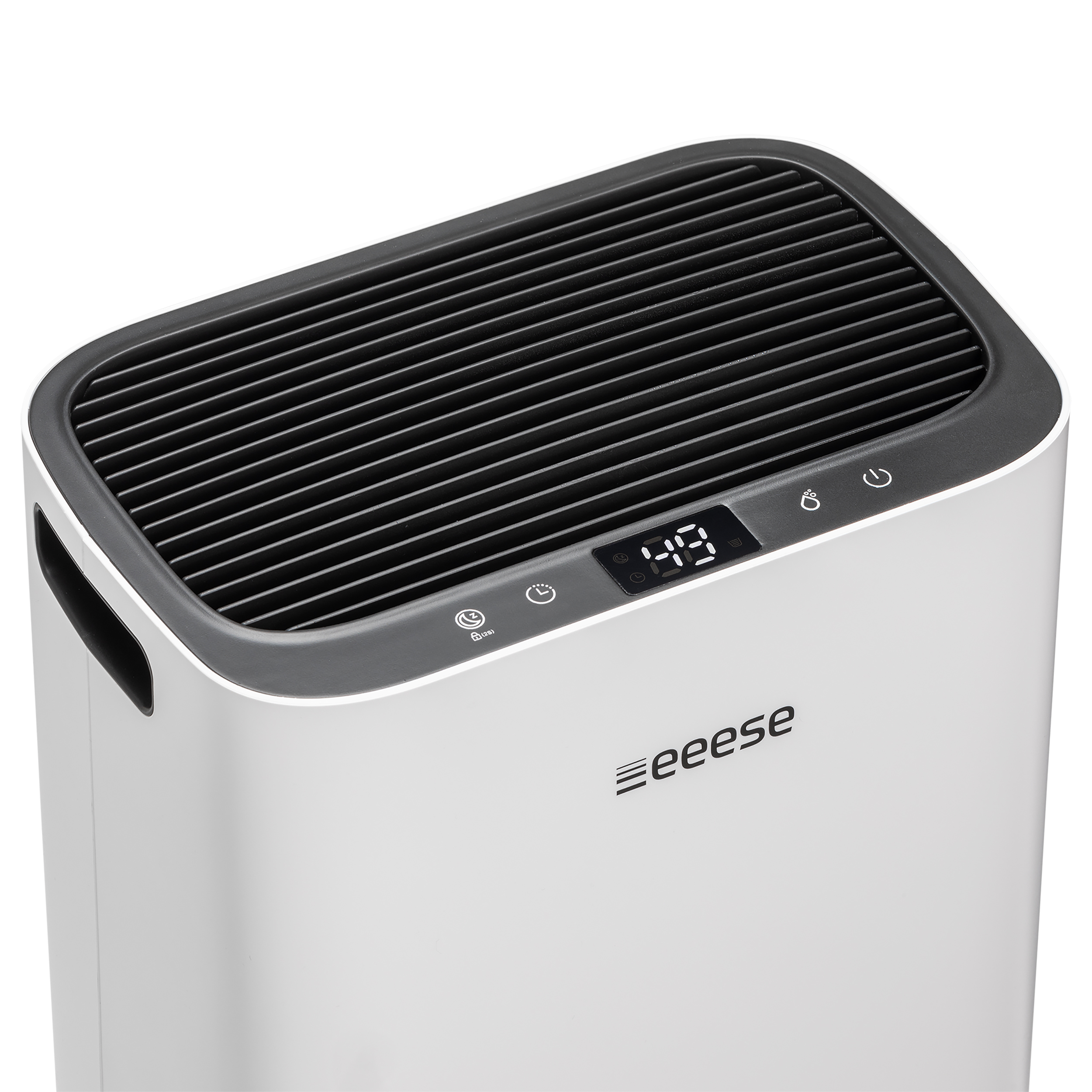 Luchtontvochtiger Eeese Anna 10L verzorgt een gezonde luchtvochtigheid in ruimtes tot 40 m². Daarnaast werkt het apparaat extreem stil, 35 - 39 dB(A) en heeft hij een ontvochtigingsvermogen van 10 liter per dag, bij een stroomverbruik van 175 watt. Eeese Anna maakt indruk met zijn functies zoals een timerfunctie en nachtstand. Met zijn chique en compacte ontwerp past hij in elk interieur en kan hij dankzij de IPX4-classificatie ook in natte ruimtes (badkamers) worden gebruikt.
